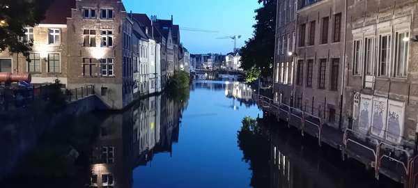 Day two, breakfast at the Westhoek and down to the harbour, stopping to look at the Belgian and British War Memorials and the sluices used by the Belgians to flood the Yser plain to balk the German advance. SE out of town on the dedicated Western “Front” cycle-path, before turning ENE towards Brugge via quite country lanes and small villages. First opportunity for coffee was de Blaaspijp in Koekelare, which looked a small and inconspicuous bar from the street, but turned out to be a serious local live music venue (with good coffee). Then through steadily more prosperous villages and eventually suburbs until Brugge, accompanied much of the way by a vintage Porsche club outing – over a hundred 911s of various ages and some glorious seventies paint schemes burbling around in convoy. Brugge attractive as ever but heaving with tourists taking selfies, in places it was necessary to walk the bikes even on main roads, but we had a good lunch in Dweersstraat before joining the brilliant Gent-Brugge Canal-side cycle path to speed us on our way to Gent and the Hotel Carlton on Kon. Astridlaan – big comfy rooms, secure parking (and power for e-bikes), and excellent breakfasts. Out into Gent for beer at Barrazza, steaks at t’Koninghuis on Oudburg, and back to Barrazza for more beer as it was that good.