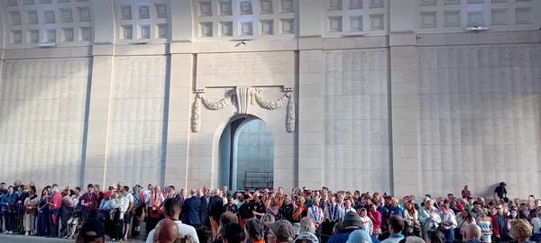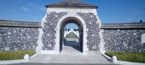 Day three, excellent breakfast at the Carlton (did I mention how good the breakfasts were?) then back onto canal paths towards Roeselare and Iper. Generally easy going apart from a short stretch where the towpath was closed for maintenance resulting in a detour round an industrial estate and bits of bypass, and some stretches where the canal was a very sinister and algae-induced shade of green. Stopped for beers at t’Stil Ende Nancy, a lovely redbrick bar on the canalside at Izegem, and then a good burger lunch at Café St Georges in the station square at Roeselare. Left the canals and headed SW towards the front, calling at Passendale, then down the almost imperceptible slope to the British Tyne Cot and German Langemark cemeteries before arriving in Iper entering the old town via the Menin Gate. Checked into Hotel O on D’hondstraat (a bit of a warren but good value, good bike storage etc and just off the Cloth Hall Square), down to the Menin Gate for the immensely moving Last Post ceremony along with hundreds of others on a warm summer Sunday evening, and beers and dinner (more moule frites) in town.