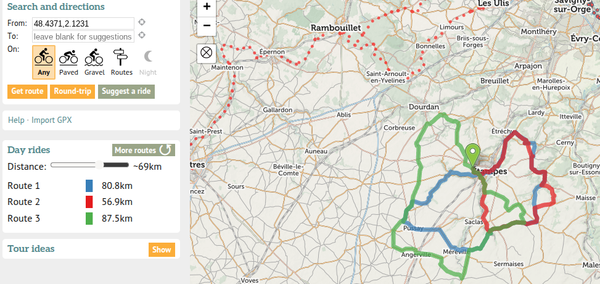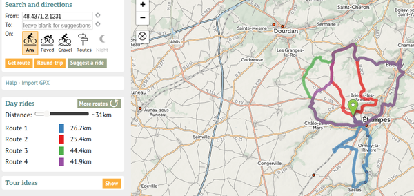 In that case we can choose any point, anywhere, choose 'suggest a ride', set the distance and generate numerous options all starting and ending at our selected point. Refresh for more options.