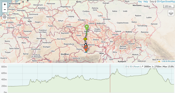 I'm trying to plan a route from Prague to Linz. I'd like to follow the EV7, roughly, although interested to see the route that cycle.travel suggests. When I pick a route can I see the elevation profile of the ride, or at least get an idea of total elevation gain and loss on the whole route? Thanks! Emma