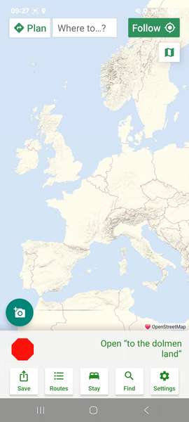 Suddenly I am in navigation mode without an active route, so if I click on the red icon to stop navigation nothing happens. I was able to to a short video and a picture.